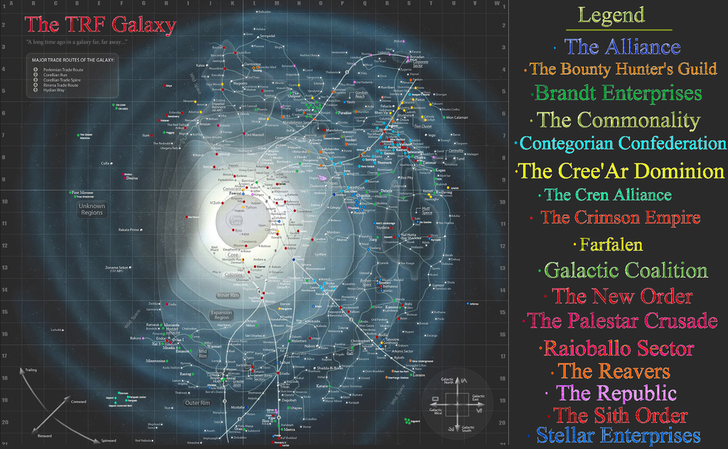 Wes seems to want to take a crack at a new-old galaxy map, which sounds just grand to me. Wes, just know that we (or at least I) are going to be harassing you to move some of our canon planets around to match "TRF Canon" for, oh, the next six months or so.